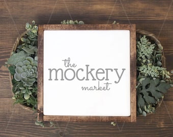 Wood Framed Greenery Succulent Sign Mock Up Instant Download
