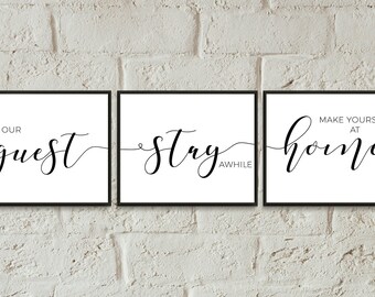 Guest Room Print Be Our Guest Stay Awhileguest Bedroom Wall Etsy