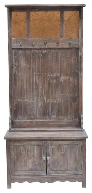 Landon Hall Tree With Storage Bench Distressed Gray Farmhouse