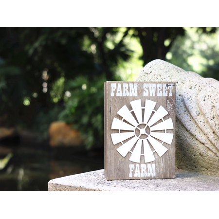 Parisloft Rustic Farm Sweet Farm Wood Box Sign Windmill Accent