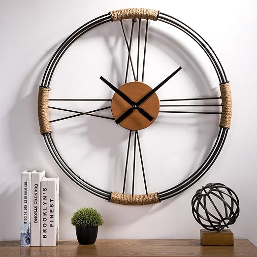 Large Display Wall Clock Analog Metal Modern Farmhouse Home Office