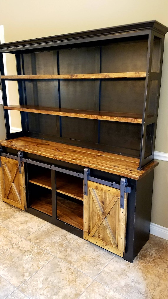 Barn Door Hutch And Buffet Solid Wood Farmhouse Rustic Etsy