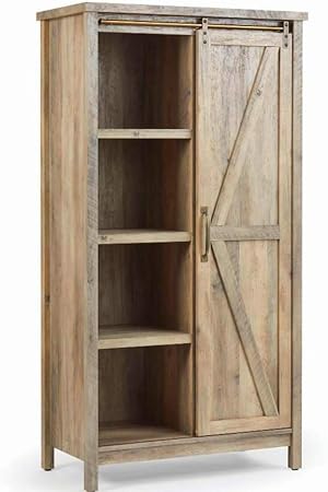 Small Kitchen Cabinet Bookcase Rustic Farmhouse Barn Door Pantry