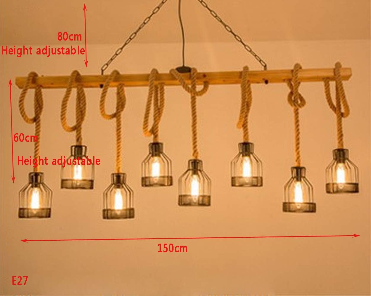 Wvivw Wooden Chandelier Light Industrial Vintage Natural Pendant