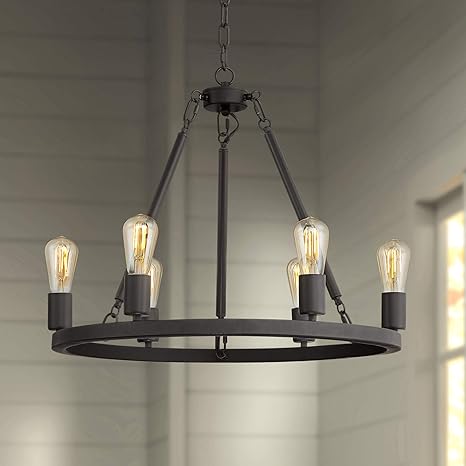 Daniel Matte Black Wagon Wheel Chandelier 24 1 2 Wide Industrial