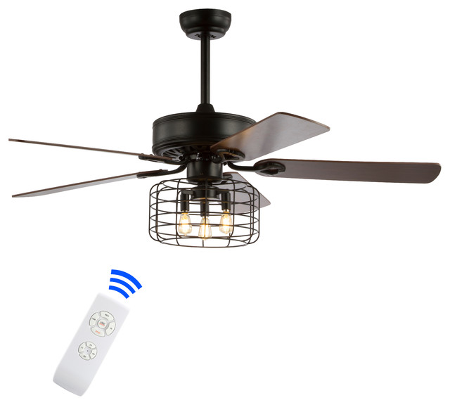 Lucas 52 Caged 3 Light Metal And Wood Led Ceiling Fan Black