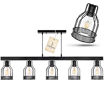Baiwaiz Industrial Dining Room Light Fixture Metal Black Cage