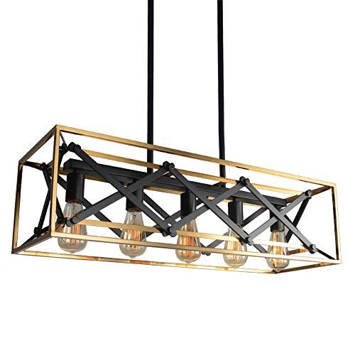 Baiwaiz Industrial Dining Room Light Fixture Metal Black Cage