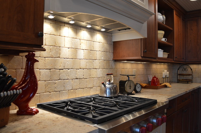Farmhouse Style Kitchen Stone Counter And Backsplash Country