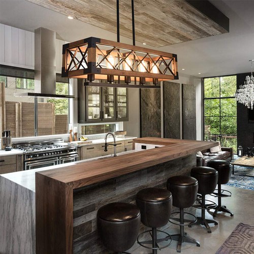 5 Lights Industrial Kitchen Island Wood Chandelier Pendant Ceiling