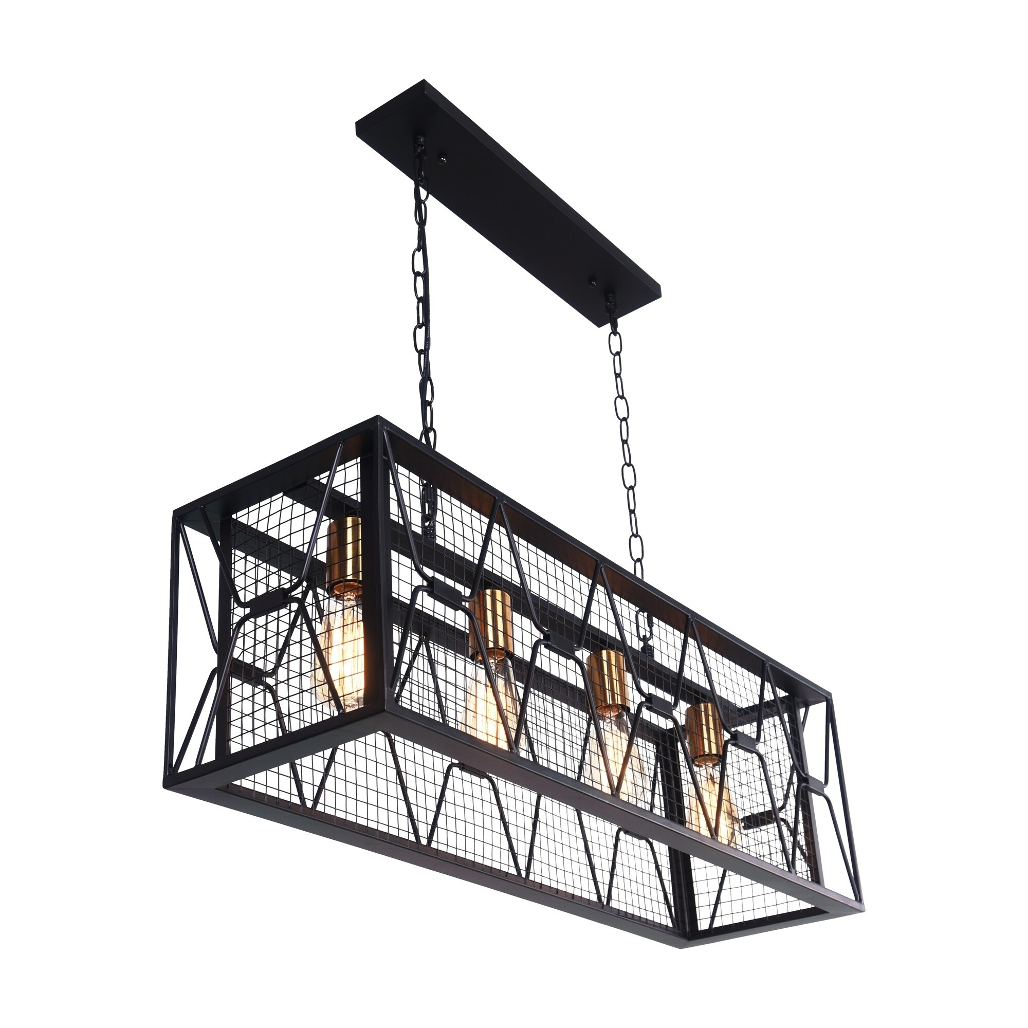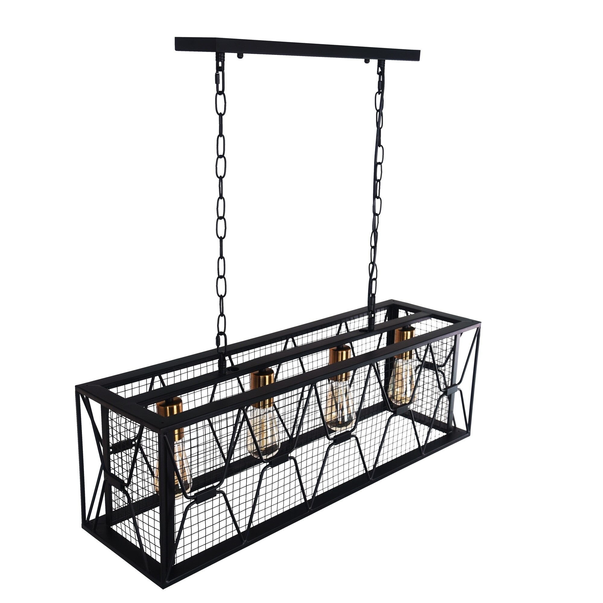 Bar Pynsseu Rectangular Vintage Rustic 4 Light Hanging Pendant