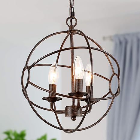Log Barn Globe Chandeliers Farmhouse Industrial Orb Pendant