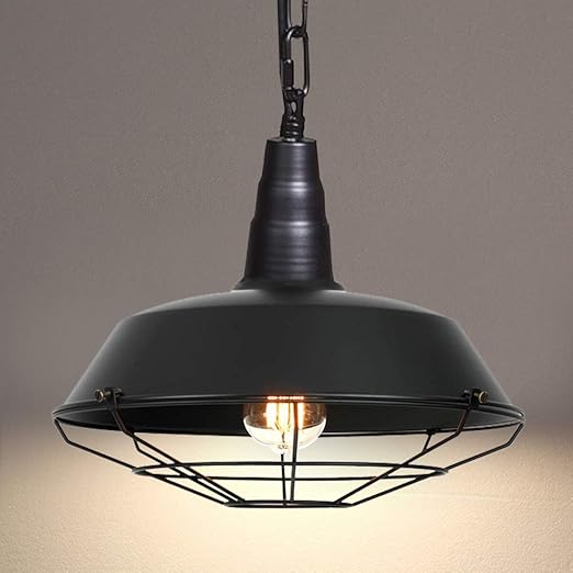 Lynpon Industrial Barn Pendant Light Rustic Hanging Lamp Black