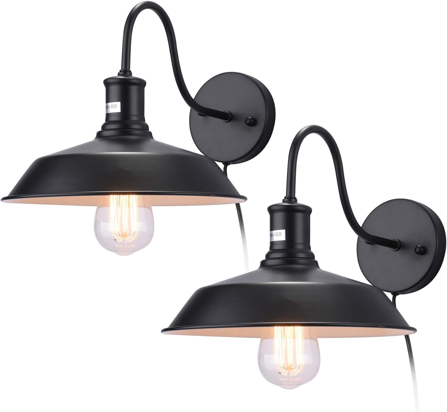 Larkar Dimmable Plug In Wall Lamp Black Industrial Lighting