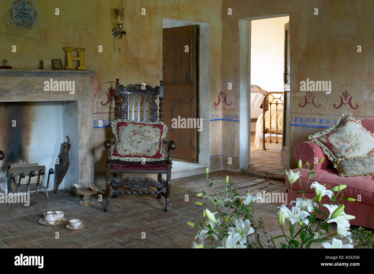 La Colombaia Tuscan Farmhouse Interior With Fireplace Stock