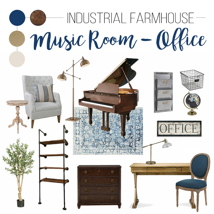 One Room Challenge Industrial Farmhouse Office Music Room Design