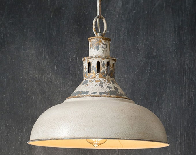 Distressed White Barn Pendant Light 14 Inch Diameter Farmhouse