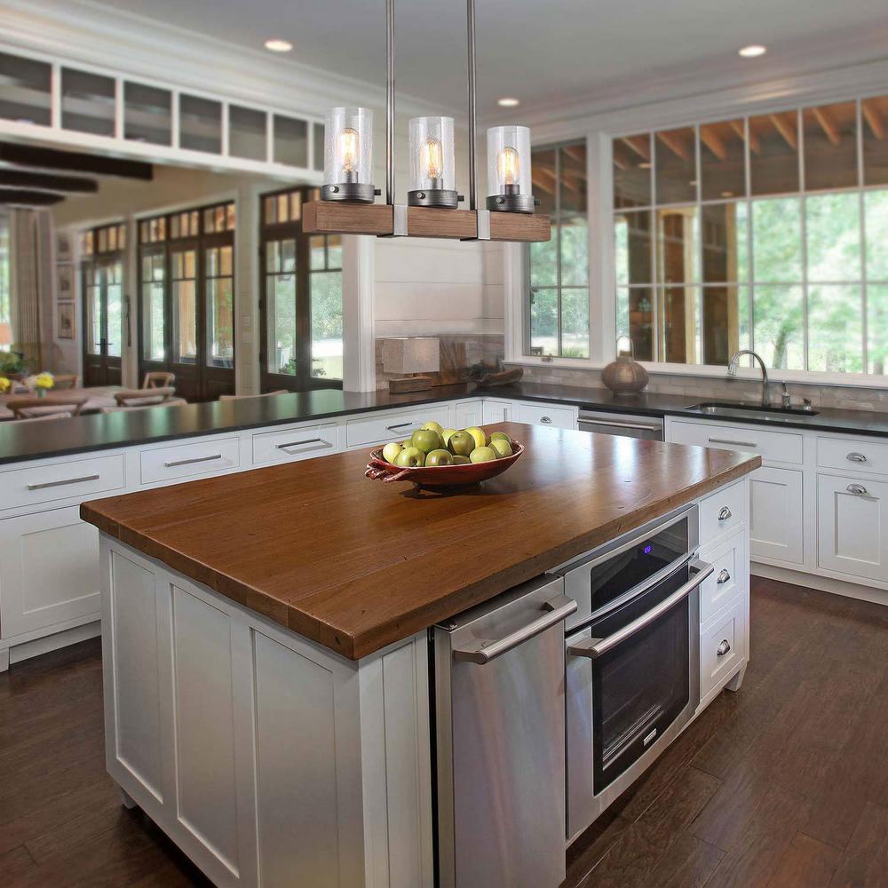 Shop Lnc 3 Light Rustic Wood Kitchen Island Lighting Farmhouse