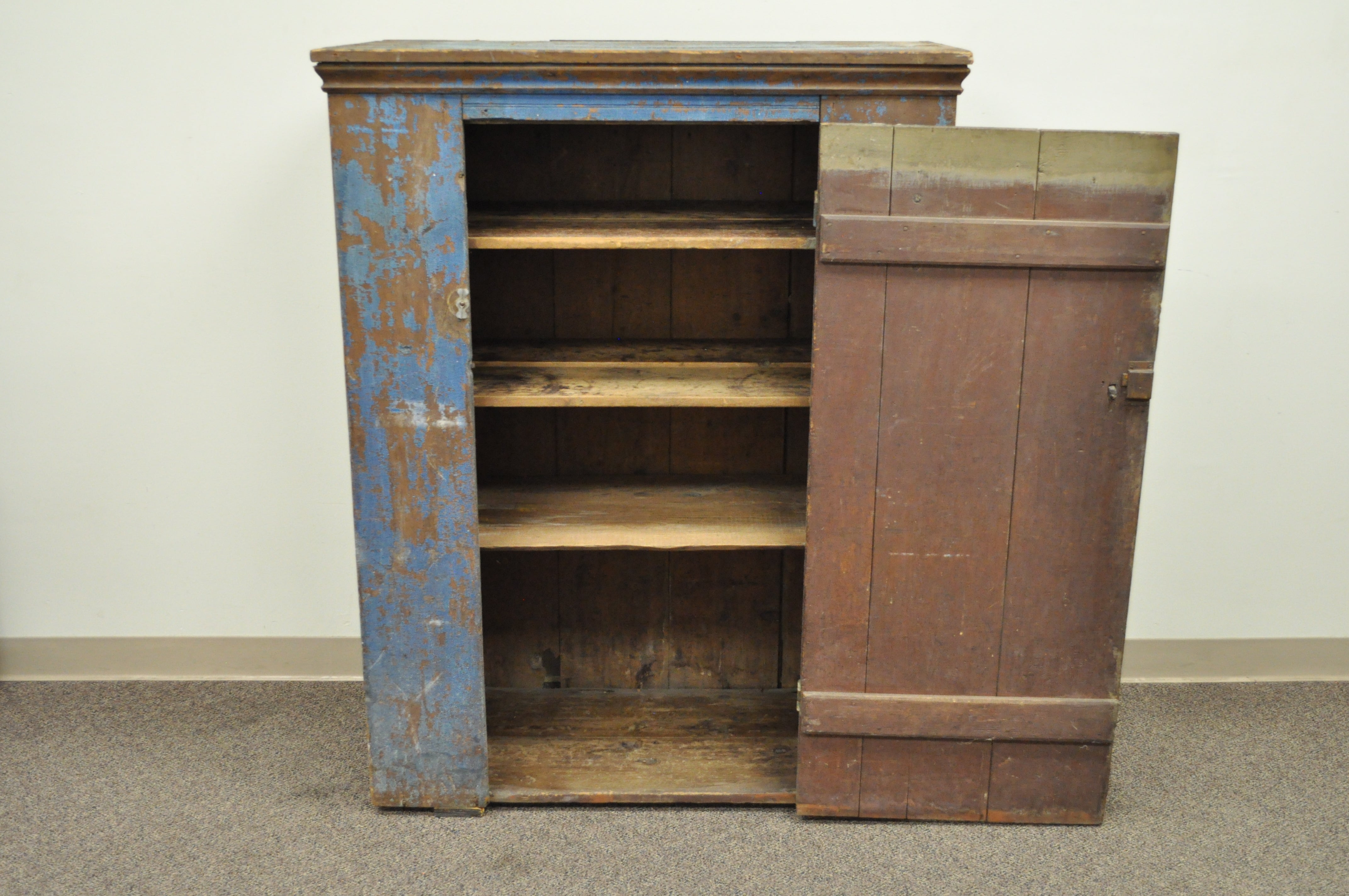 Antique Blue Distress Painted Pa Rustic Primitive Jelly Cupboard