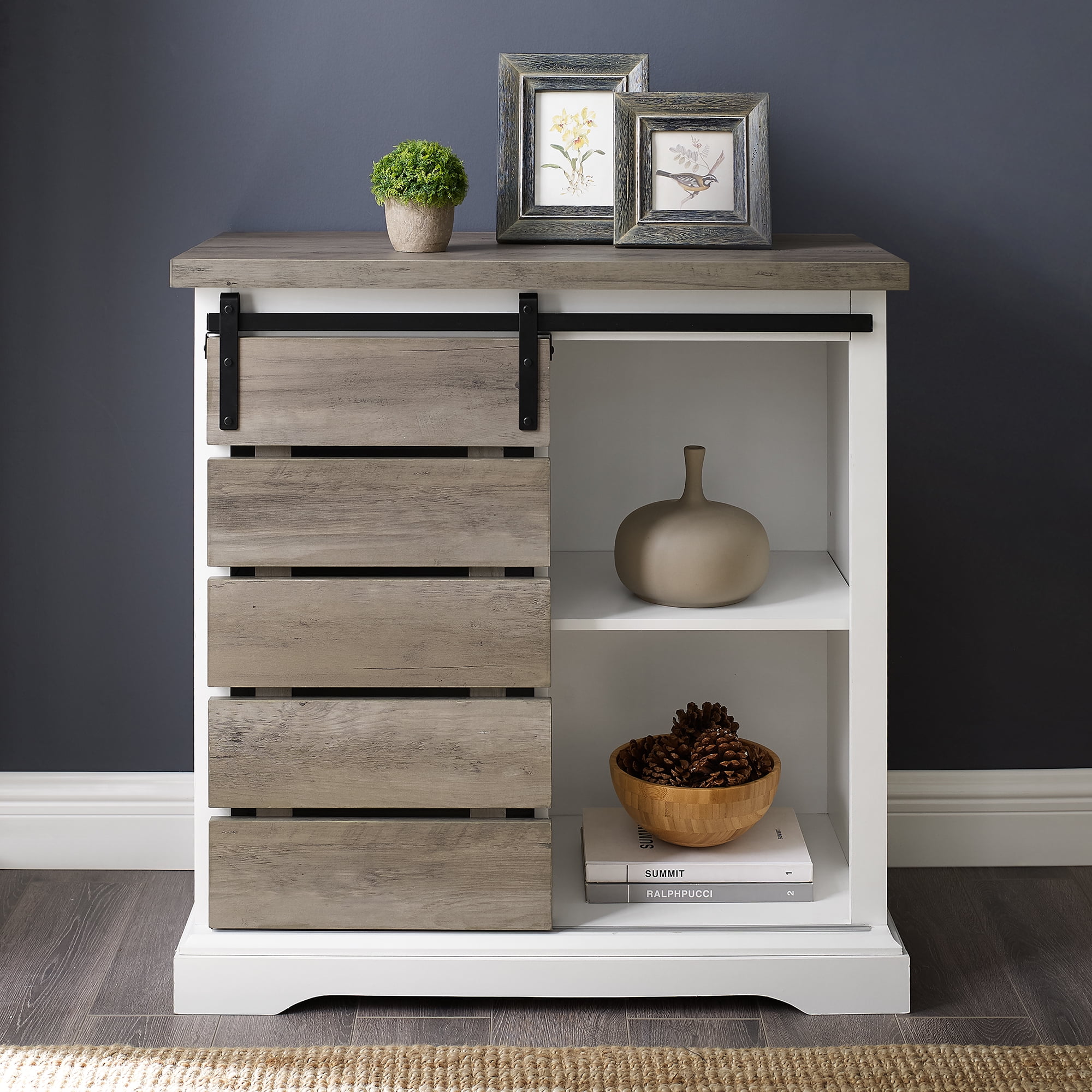 32 Rustic Farmhouse Sliding Barn Door Accent Cabinet Grey Wash