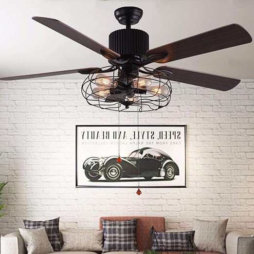52 Edison Rustic Ceiling Fan W Industrial Cage Light Rustic