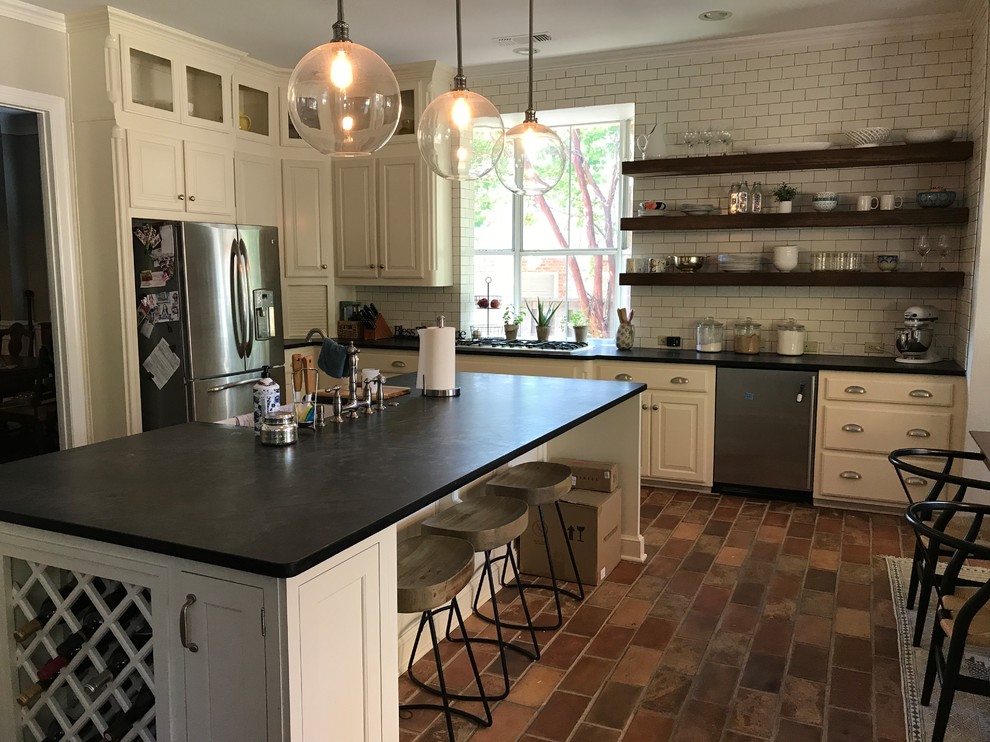 Tile Wall And Floating Shelves Farmhouse Kitchen Dallas By