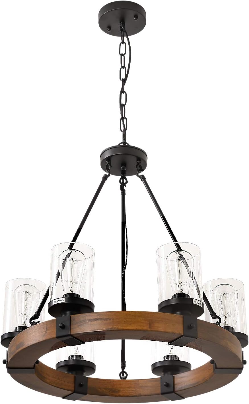 6 Light Farmhouse Wood Kitchen Island Wood Chandeliers Candle