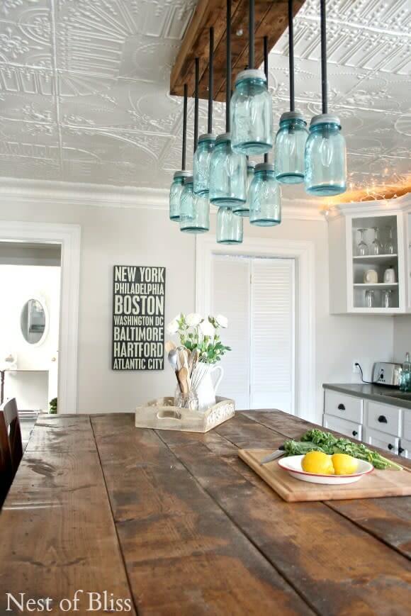 This lighting would be ideal over the island in any farmhouse kitchen or try it in the dining room. Free shipping over 49 open menu wayfair. The lights hanging down have the look of lanterns with open bottoms. The lights are suspended from an old wooden pallet affixed to the ceiling.