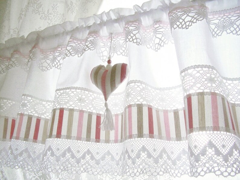 Shabby Chic Country House Curtain With Heart Farmhouse Kitchen