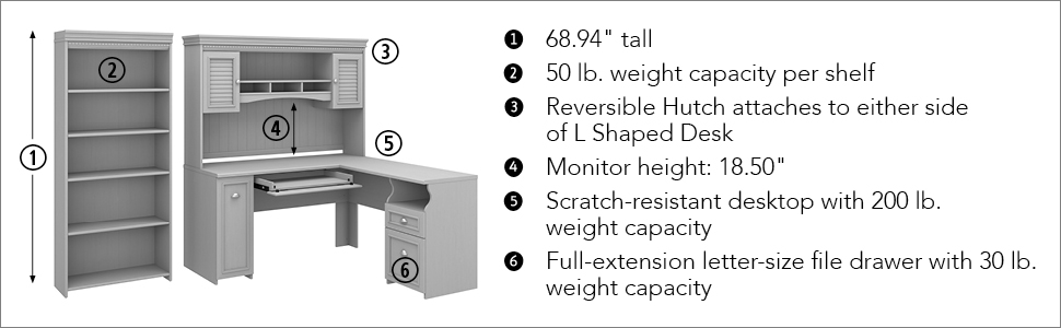 Fairview L Desk Hutch 5 Shelf Bookcase In Antique White Bush