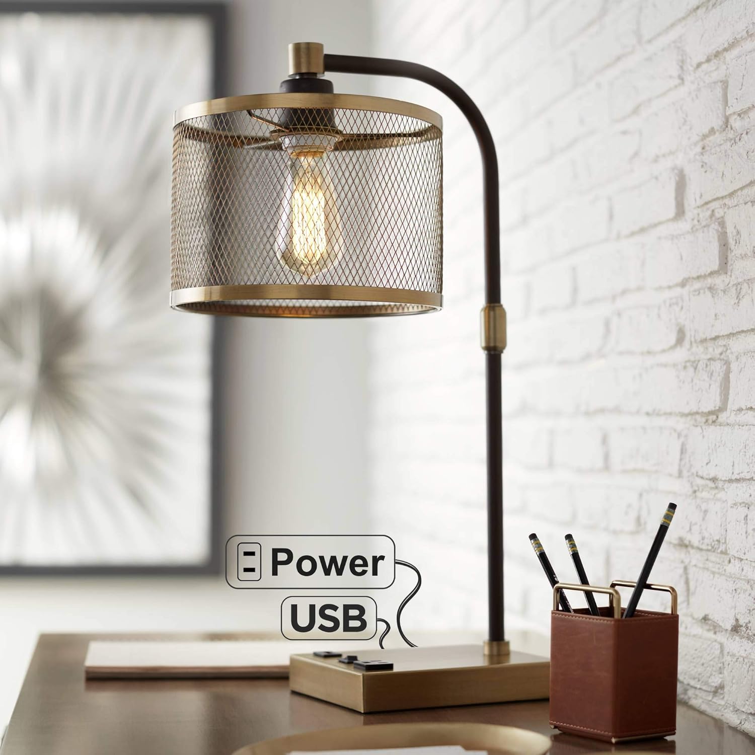 Brody Vintage Farmhouse Industrial Desk Lamp With Usb And Ac Power