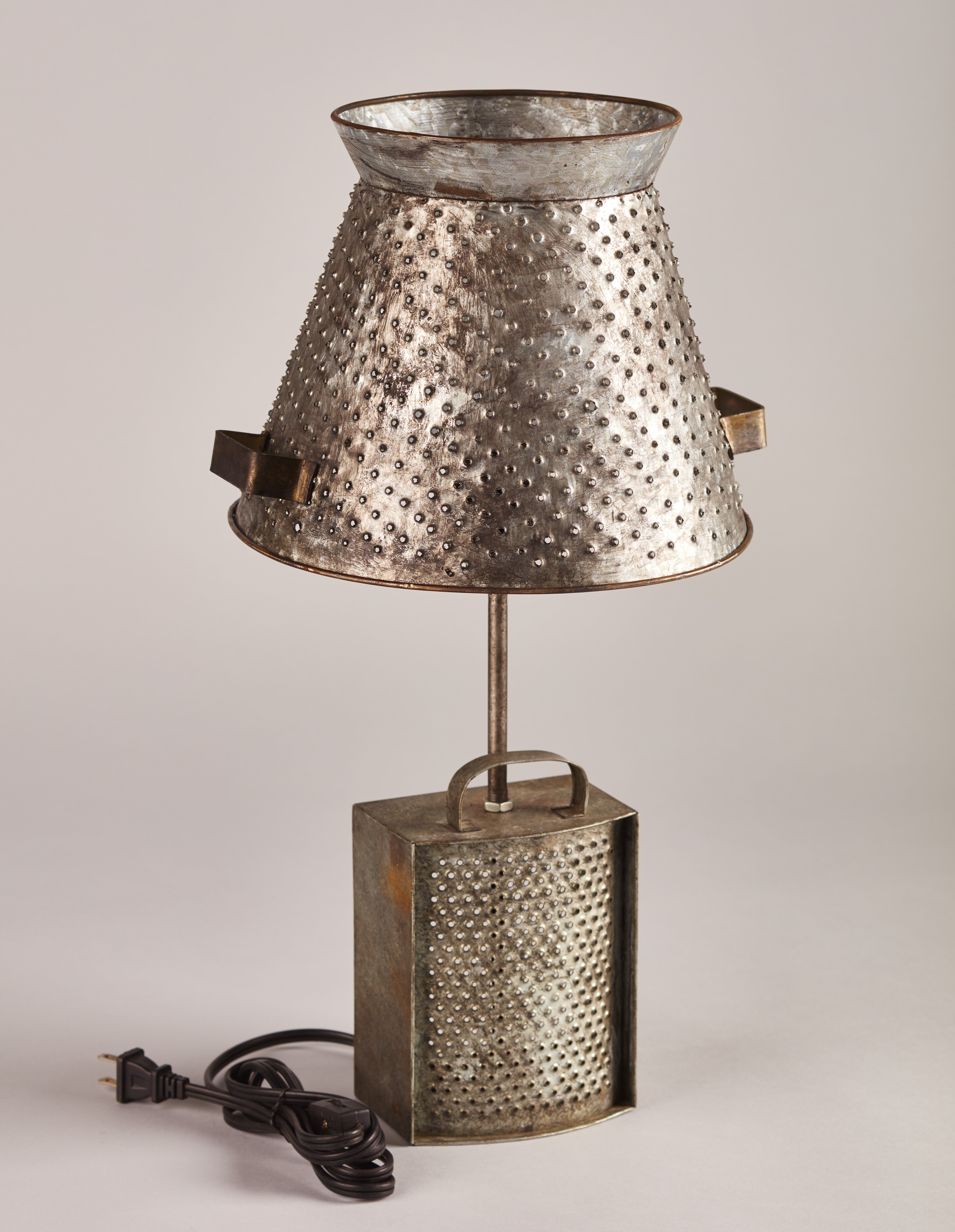 Rustic Farmhouse Table Lamp With Galvanized Cheese Grater