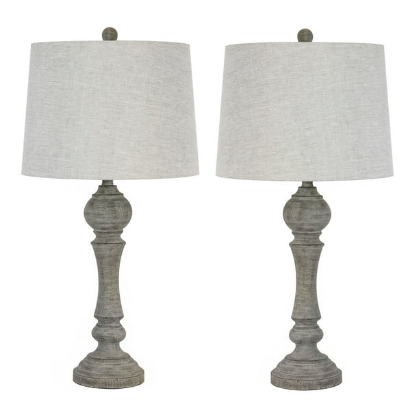 32 Reclaimed Grey Table Lamps W Linen Lamp Shades Set Of Two