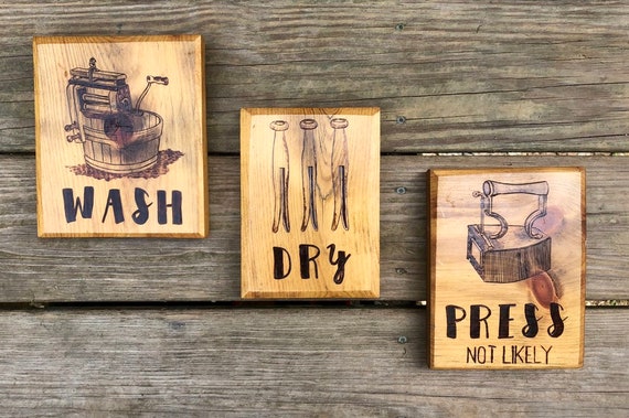 Wash Dry Fold Signs Laundry Room Signs Rustic Wooden Laundry Etsy