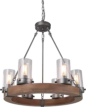Lnc Farmhouse Chandelier Wood Round Wagon Wheel 6 Light Fixture