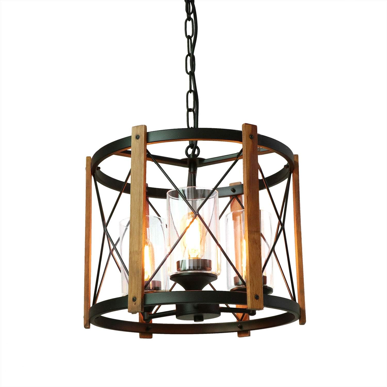 Eumyviv 3 Light Farmhouse Chandelier With Clear Glass Shade Rustic Industrial Hanging Light Fixture For Dining Room