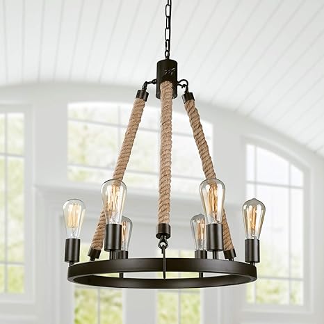 Wellmet 6 Light Farmhouse Chandelier 38 Inch Rustic Industrial