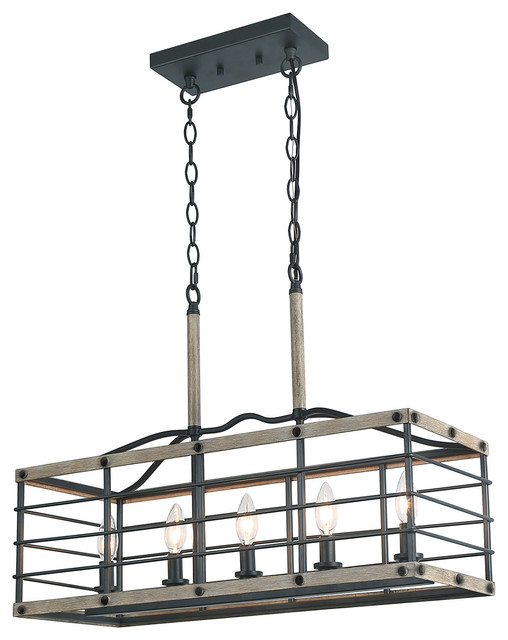 Shop Modern Farmhouse 5 Light Wood Rustic Kitchen Island Lighting