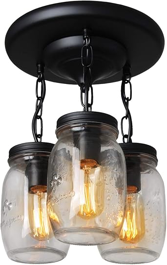 Puzhi Home Mason Jar Light Fixtures 3 Light Adjustable Farmhouse