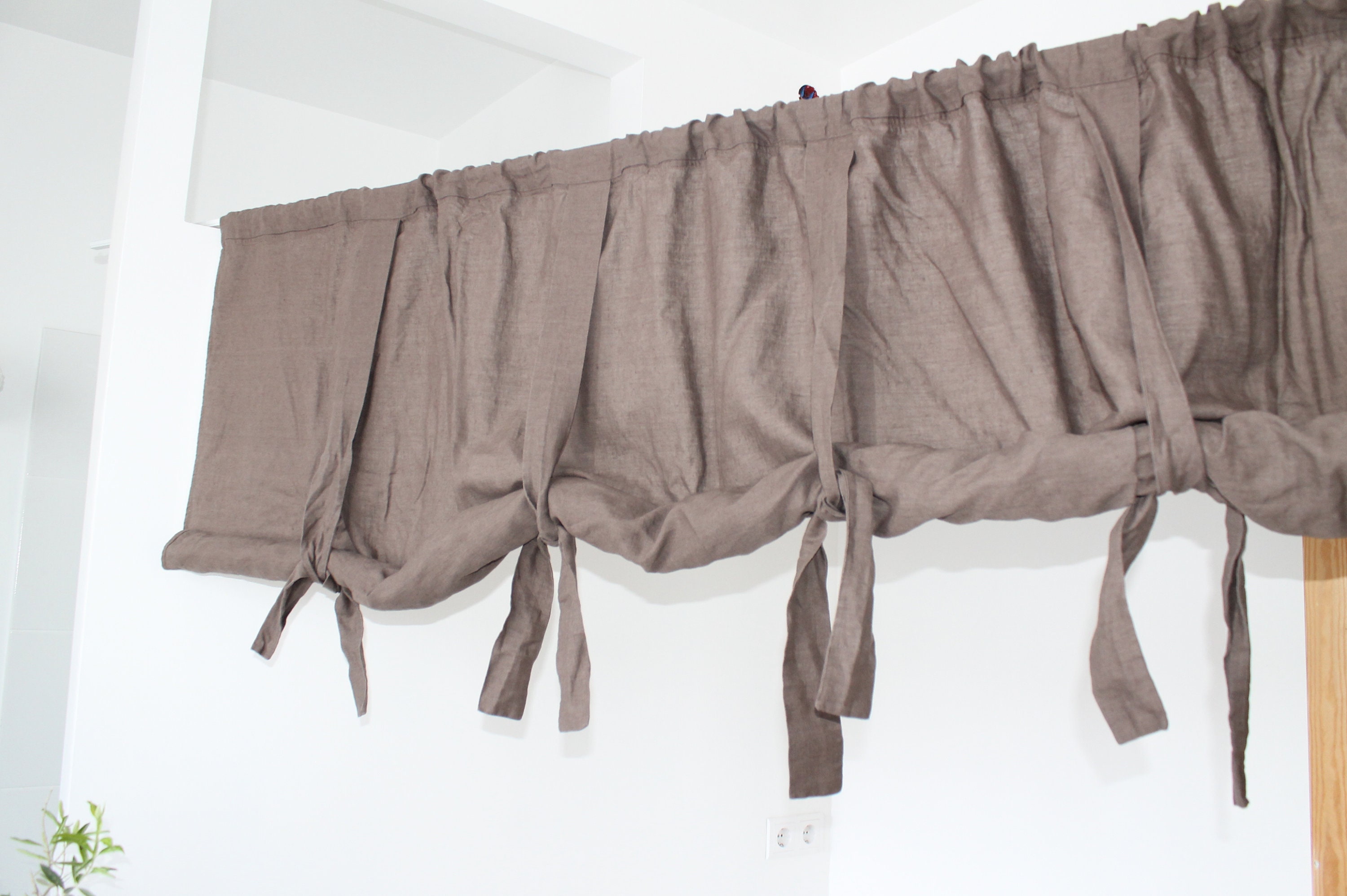 Linen Curtains Ruffled Country Kitchen Tie Up Valance Rustic