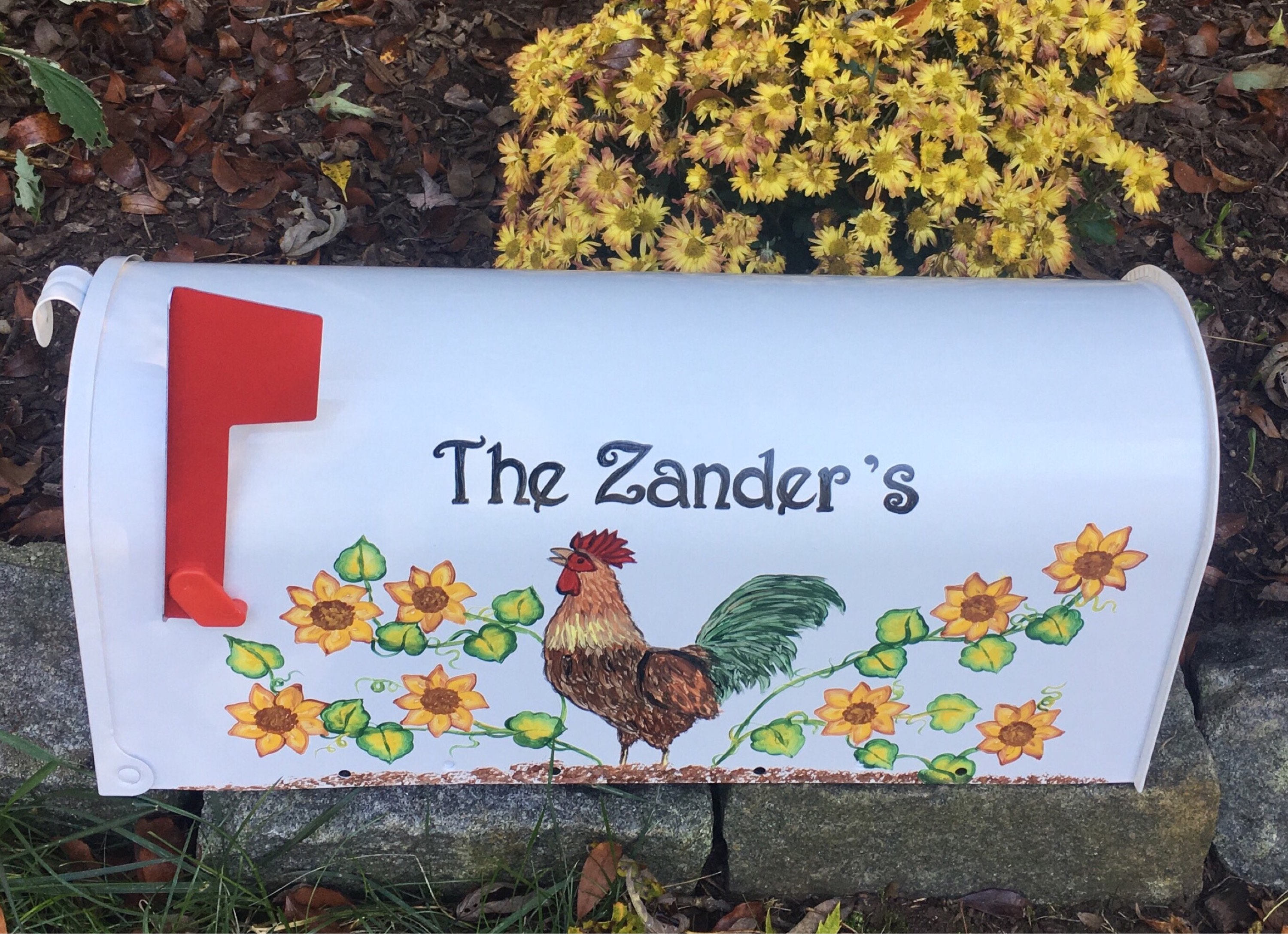 Rooster And Sunflowers Mailbox Custom Mailboxes Farmhouse Etsy