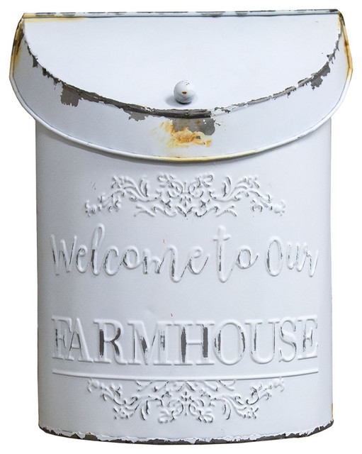 Farmhouse Mailbox Vintage Style White Metal Mail Box Embossed