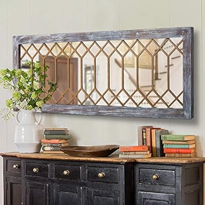 Amazon Com Kiayaci Vintage Wood Decor Mirror Wall Mounted Long
