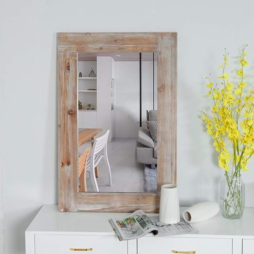 Amazon Com Kiayaci Wood Decor Mirror Wall Mounted Rustic Make Up