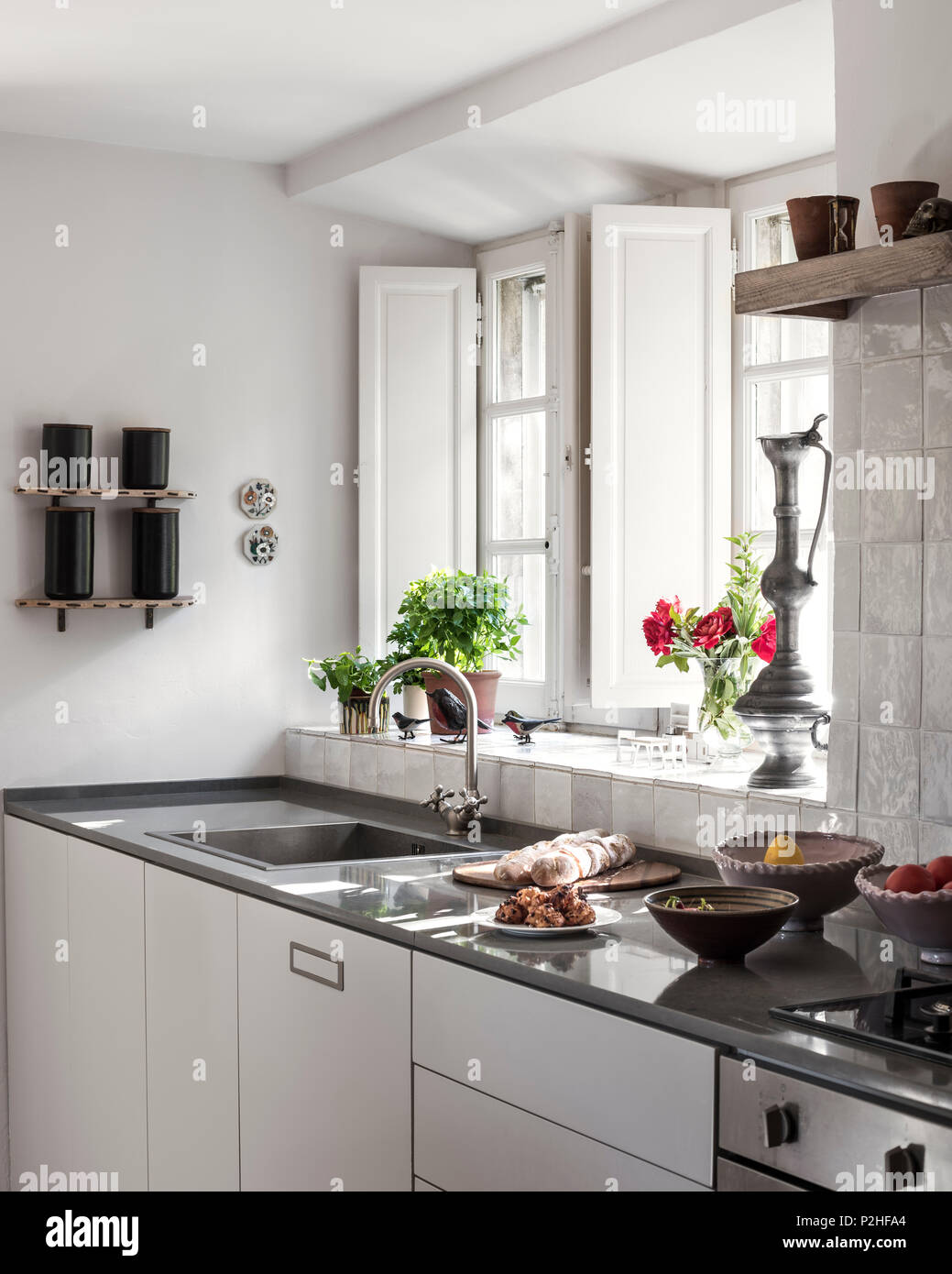 Antique Ornamentd On Windowsill In Fresh Modern Kitchen In 18th