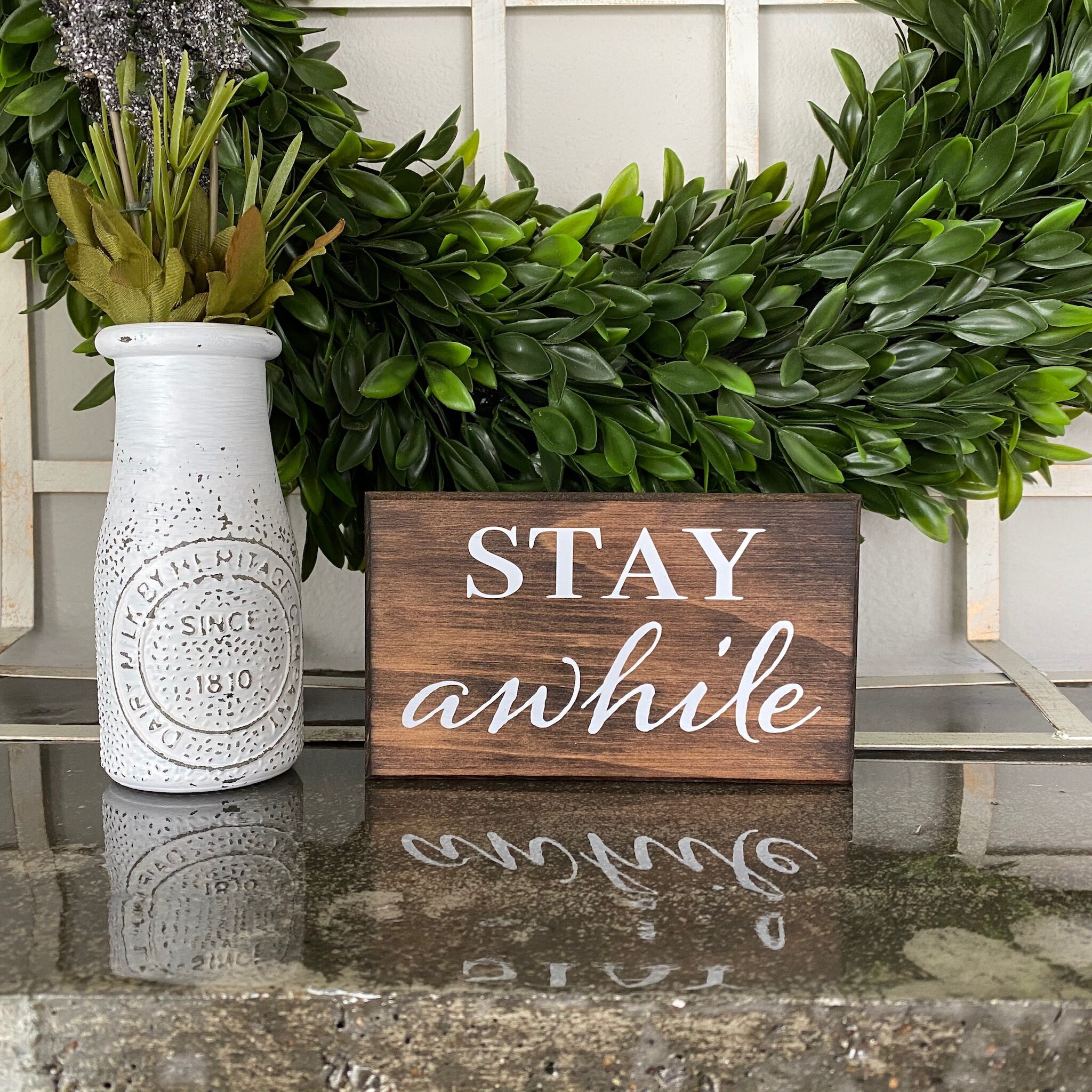 Stay Awhile Small Block Sign Small Wood Sign Farmhouse Decor