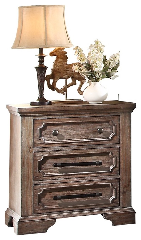 Thiara French Farmhouse Nightstand Acacia Wood Finish Farmhouse