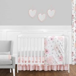 Grey Watercolor Floral Baby Girl Nursery Crib Bedding Set By Sweet Jojo Designs 4 Pieces Blush Pink Gray And