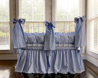 Boy Crib Bedding Set Blue Crib Skirt Ruffled Crib Bumper Etsy