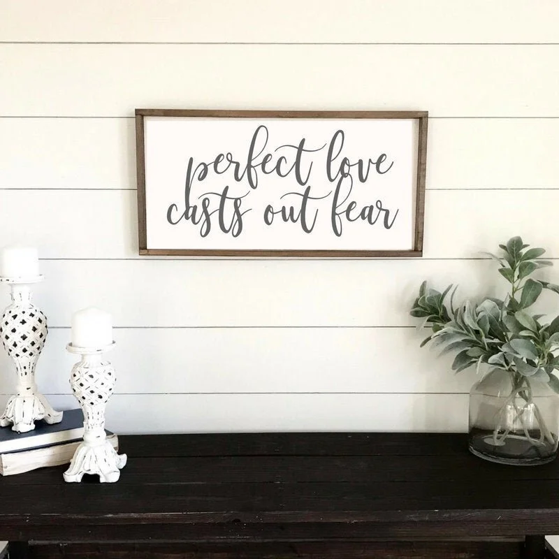 Perfect Love Casts Out Fear Wood Sign Farmhouse Wall Decor